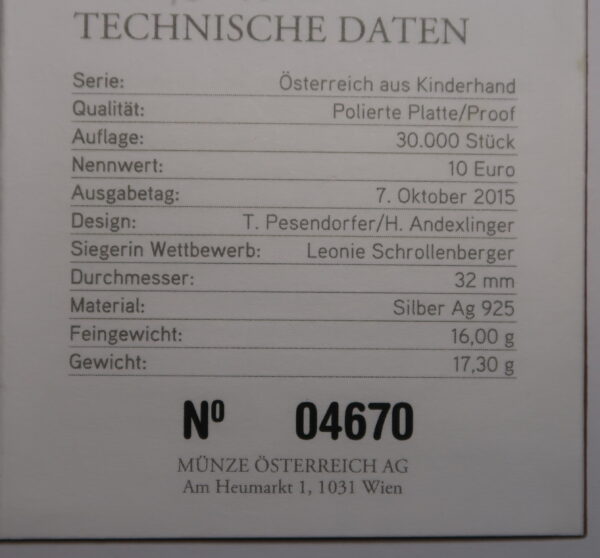AUSTRIA : SILVER PROOF 10 EURO 2015. IN ORIGINAL BOX WITH C.O.A.