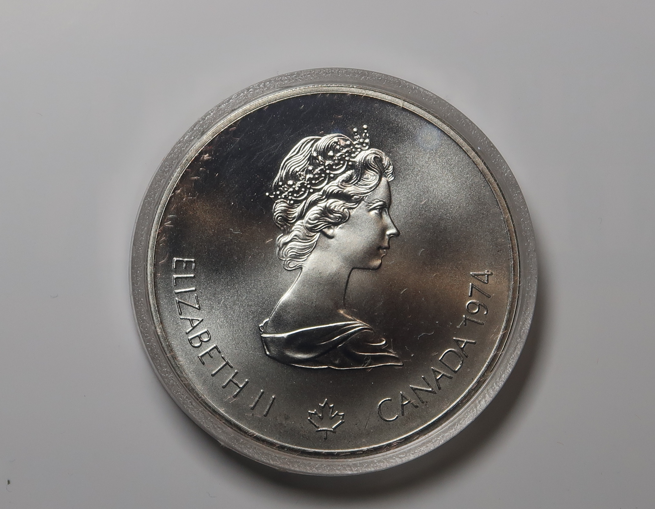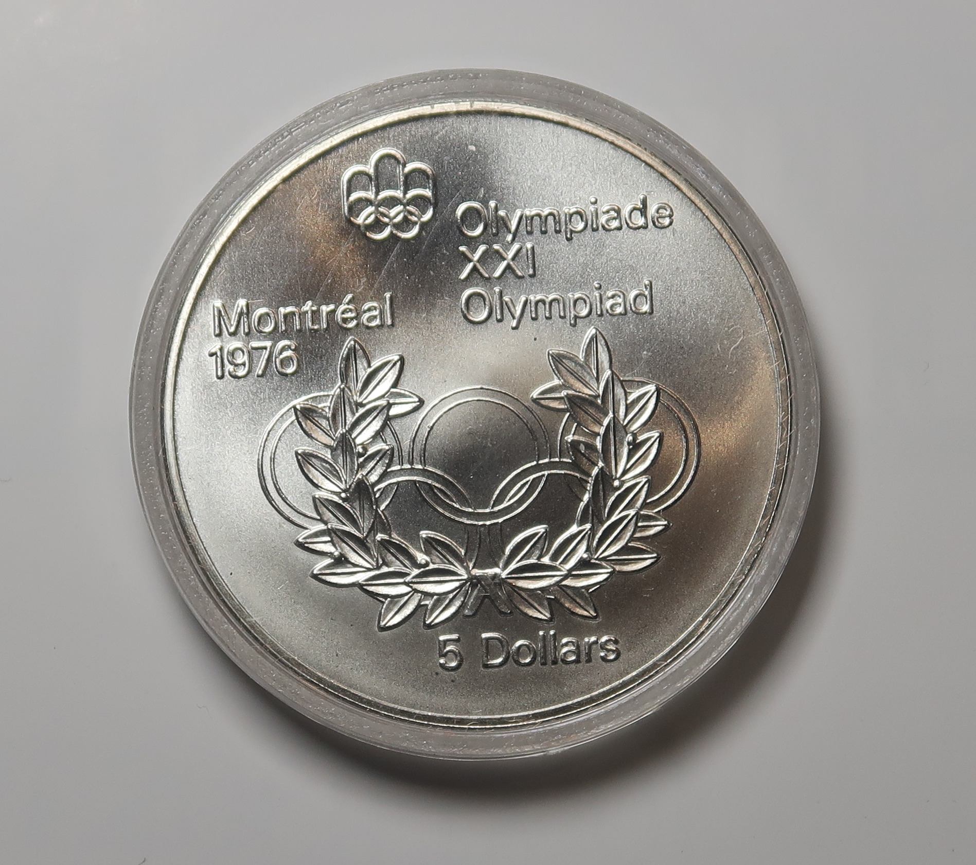 CANADA SILVER FIVE DOLLARS 1974. MONTREAL OLYMPICS 1976. IN CAPSULE.