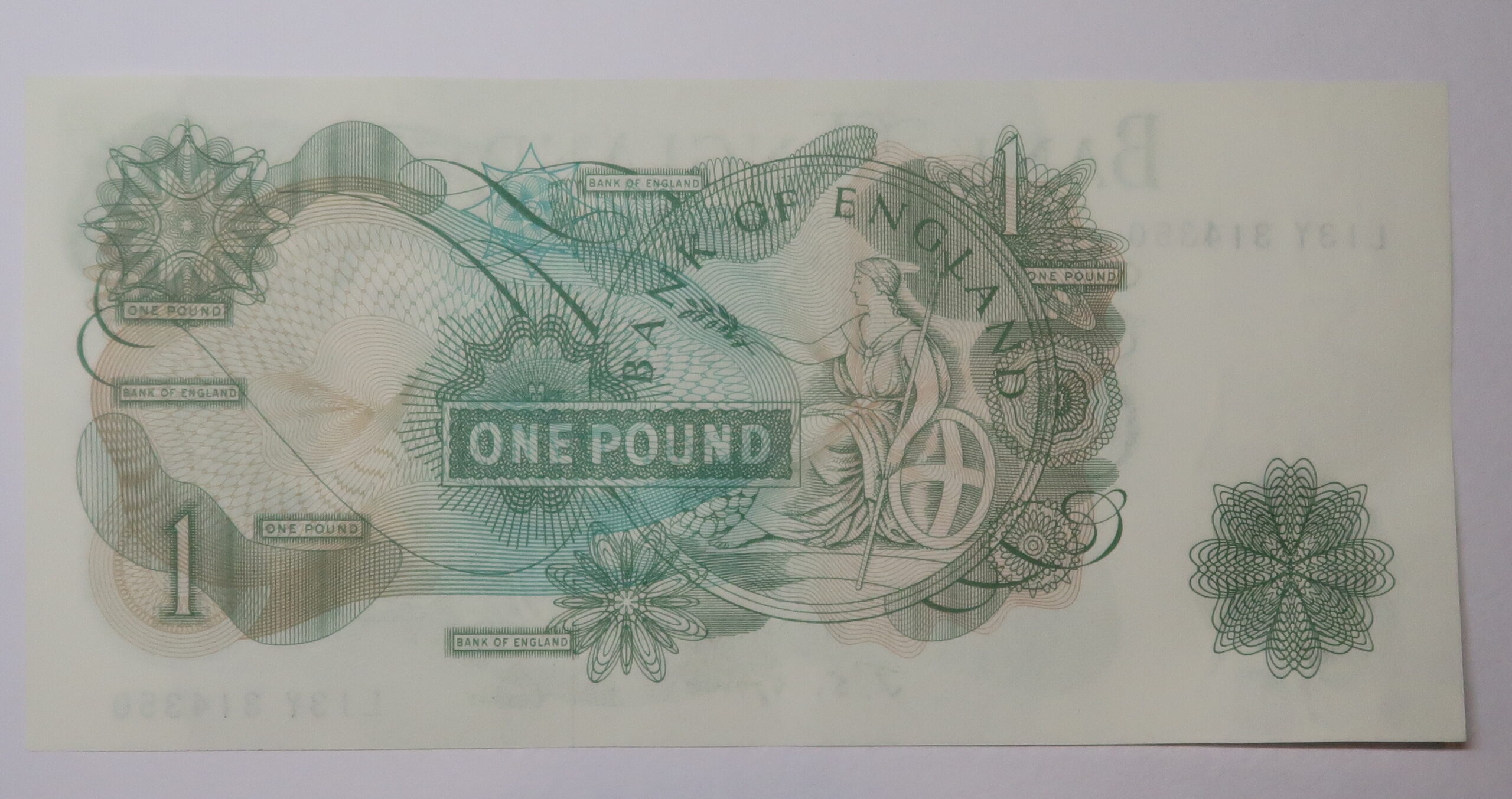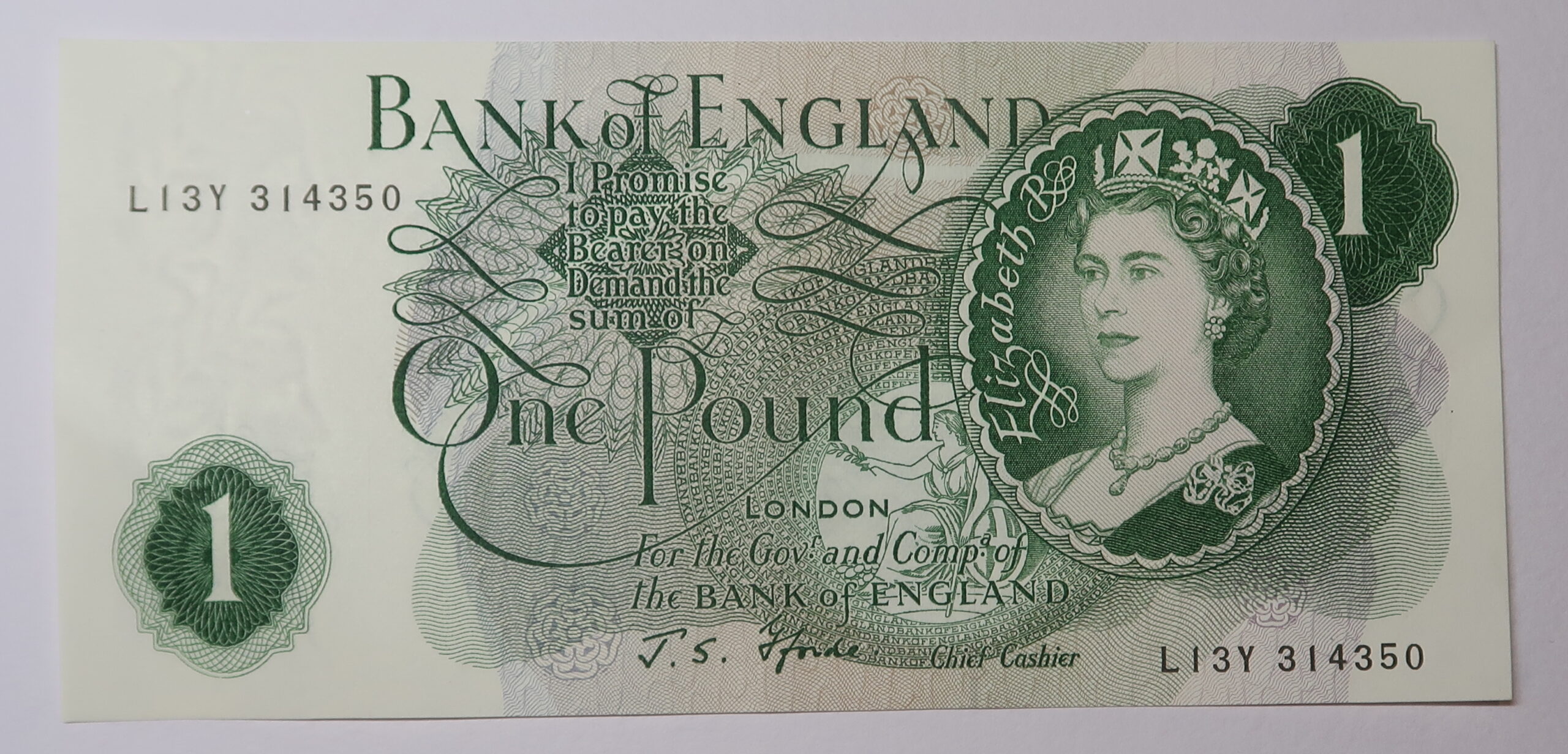 GREAT BRITAIN ONE POUND NOTE. SERIAL NO: L13Y 314350.