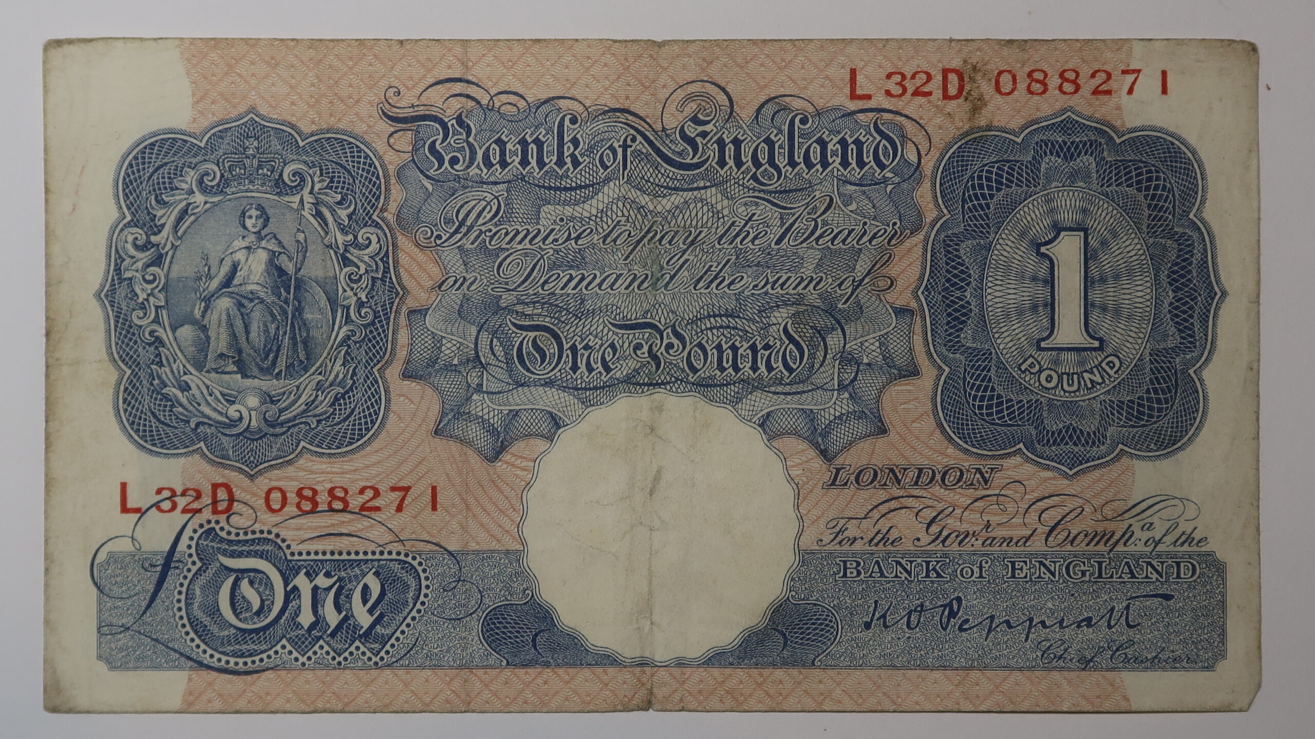 GREAT BRITAIN ONE POUND NOTE. SERIAL NO: L32D 088271.