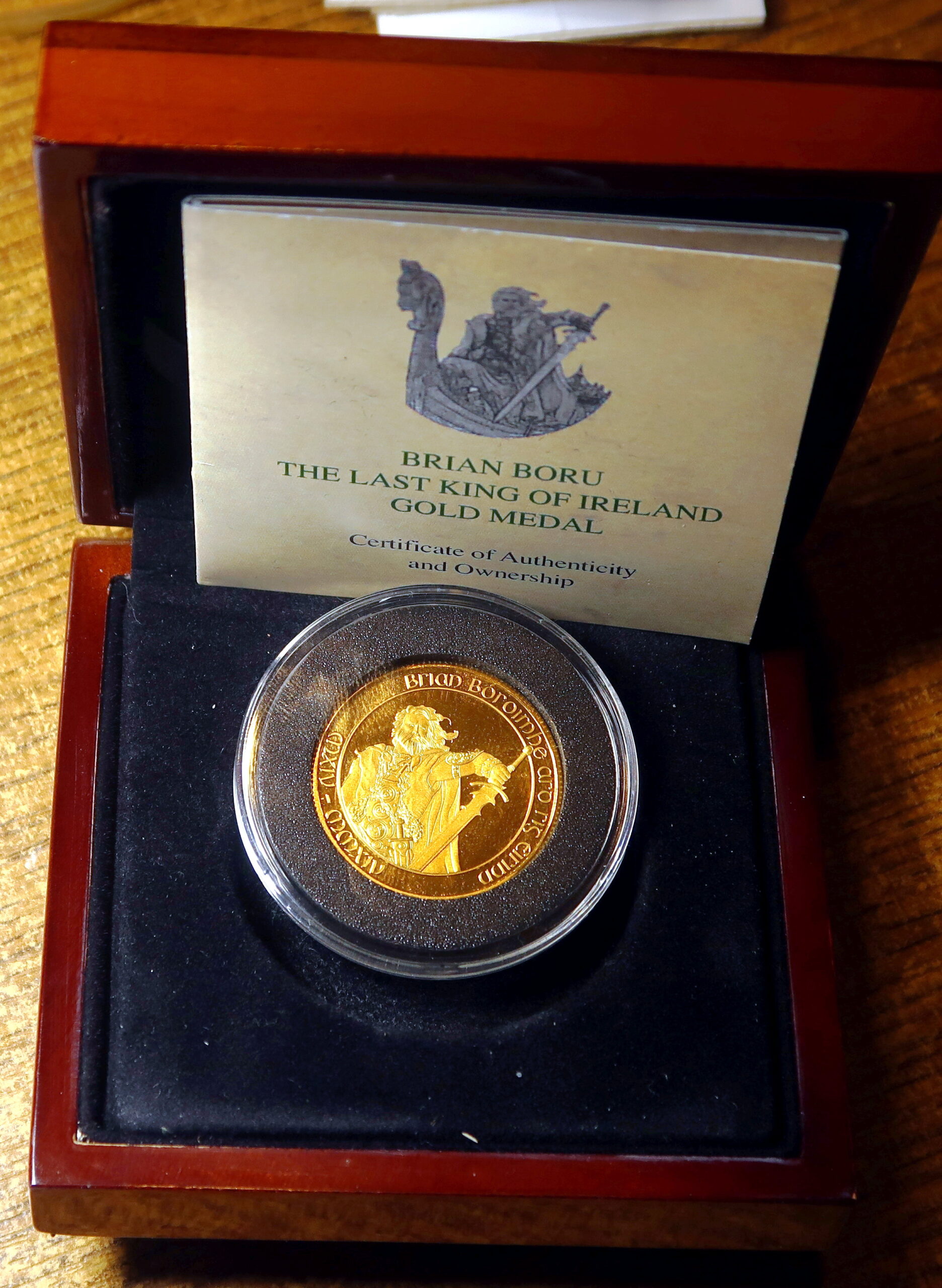 IRELAND : BRIAN BORU 9CT GOLD MEDAL. LAST KING OF IRELAND. 1014-2014.
