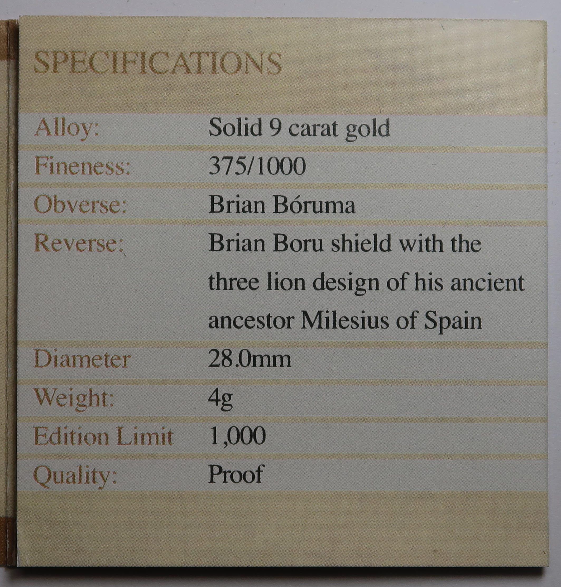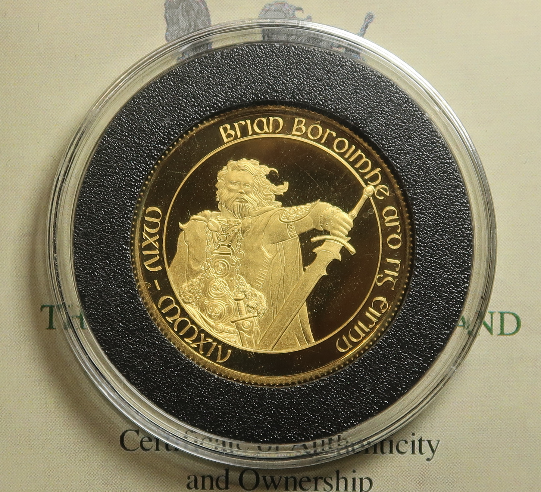 IRELAND : BRIAN BORU 9CT GOLD MEDALLION. LAST KING OF IRELAND. 1014-2014.