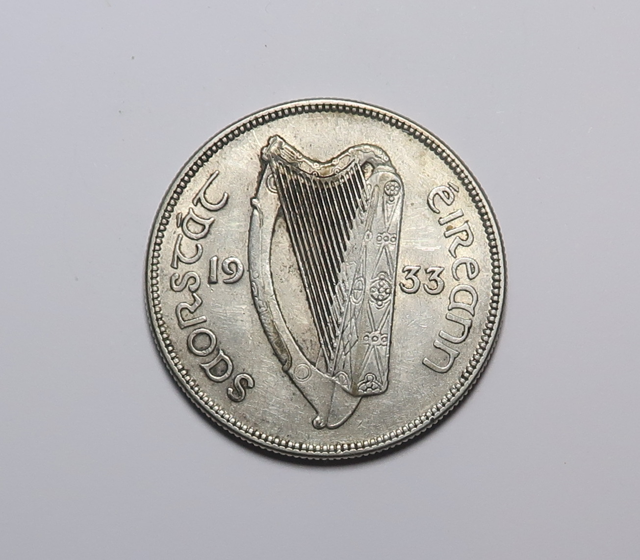 IRISH SILVER HALF CROWN DATED 1933.