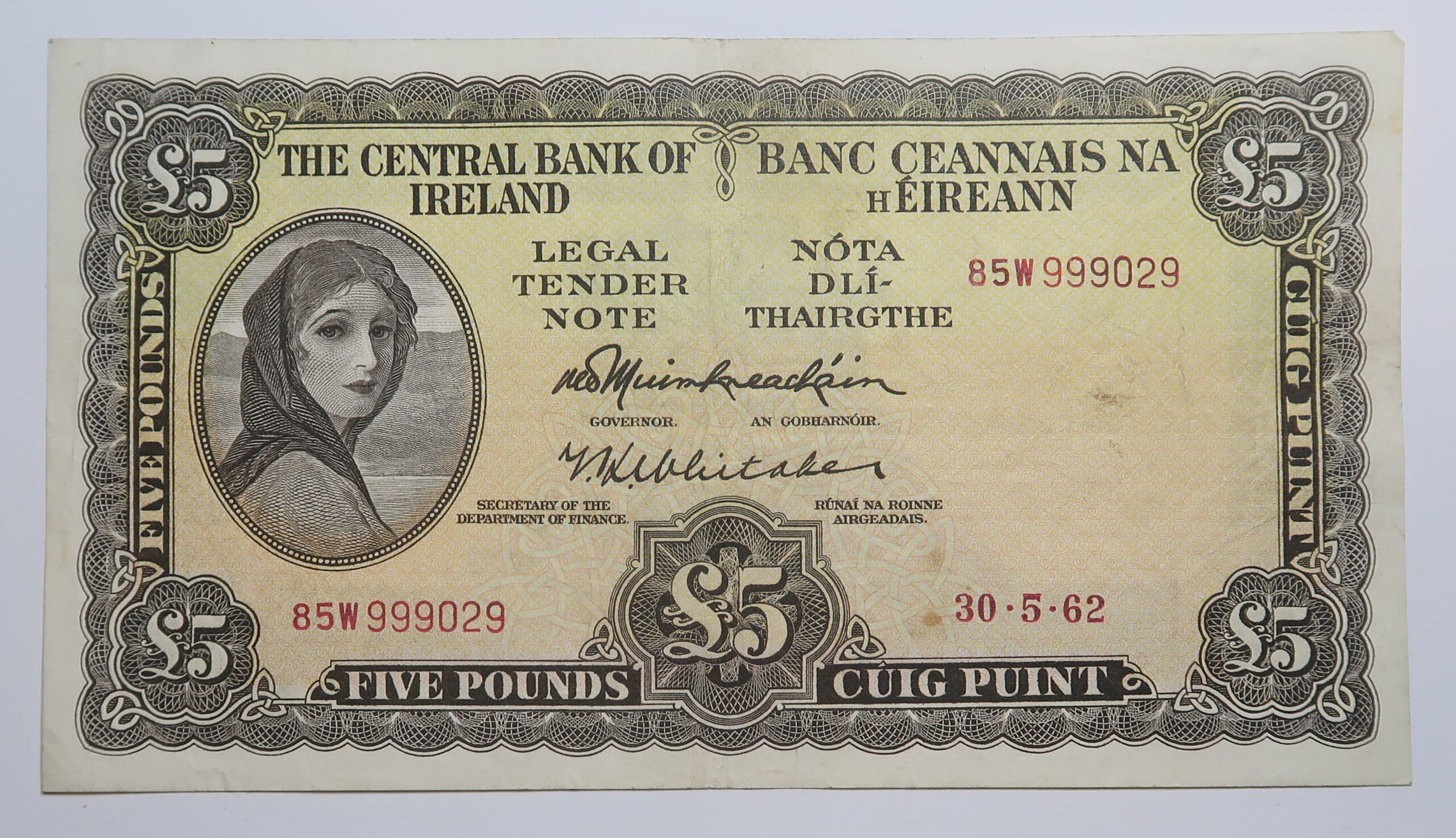 Home / Irish Banknotes / IRELAND LAVERY FIVE POUND NOTE 30.5.1962.