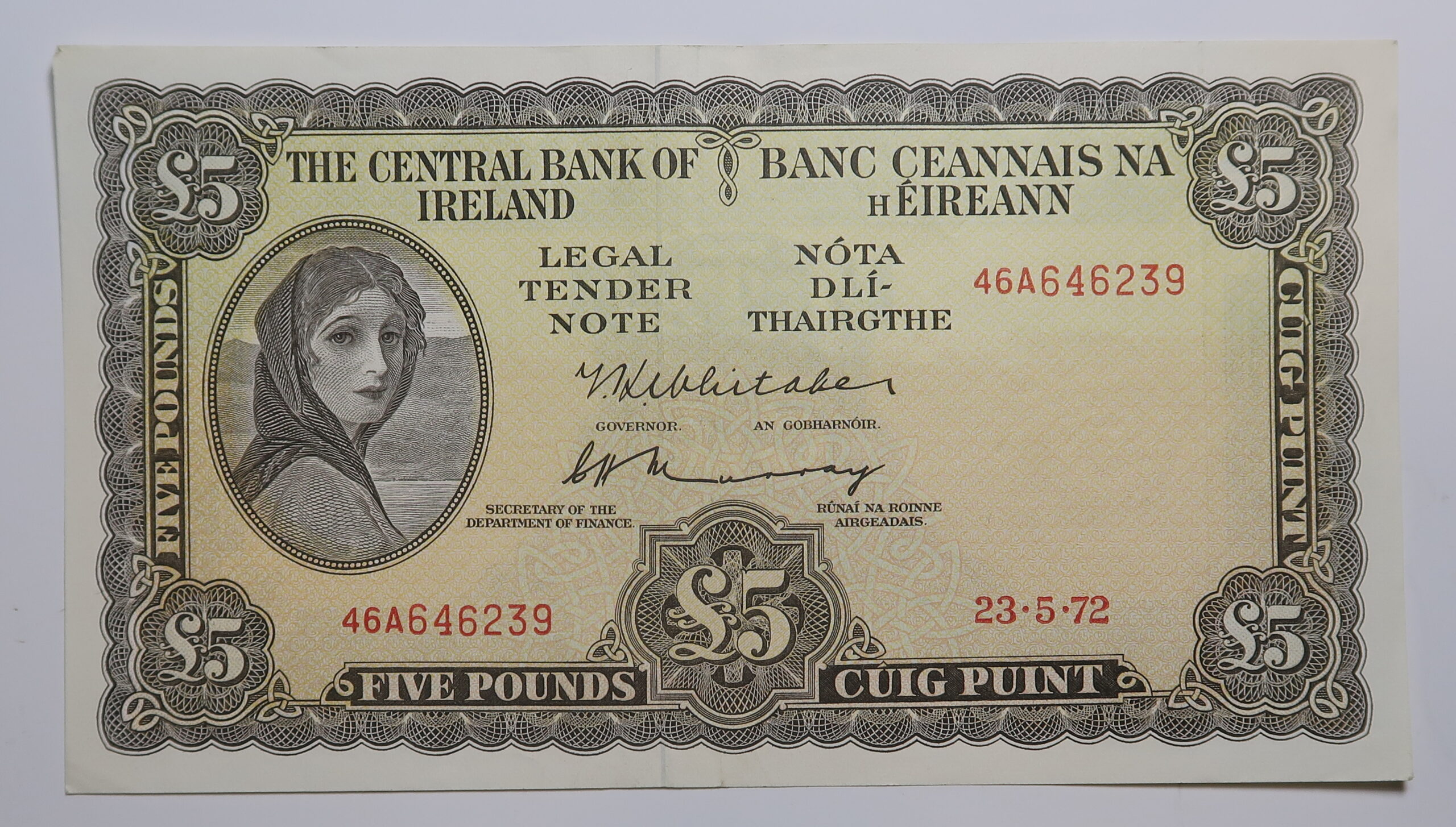 Home / Irish Banknotes / IRELAND LAVERY FIVE POUND NOTE 23.5.1972.