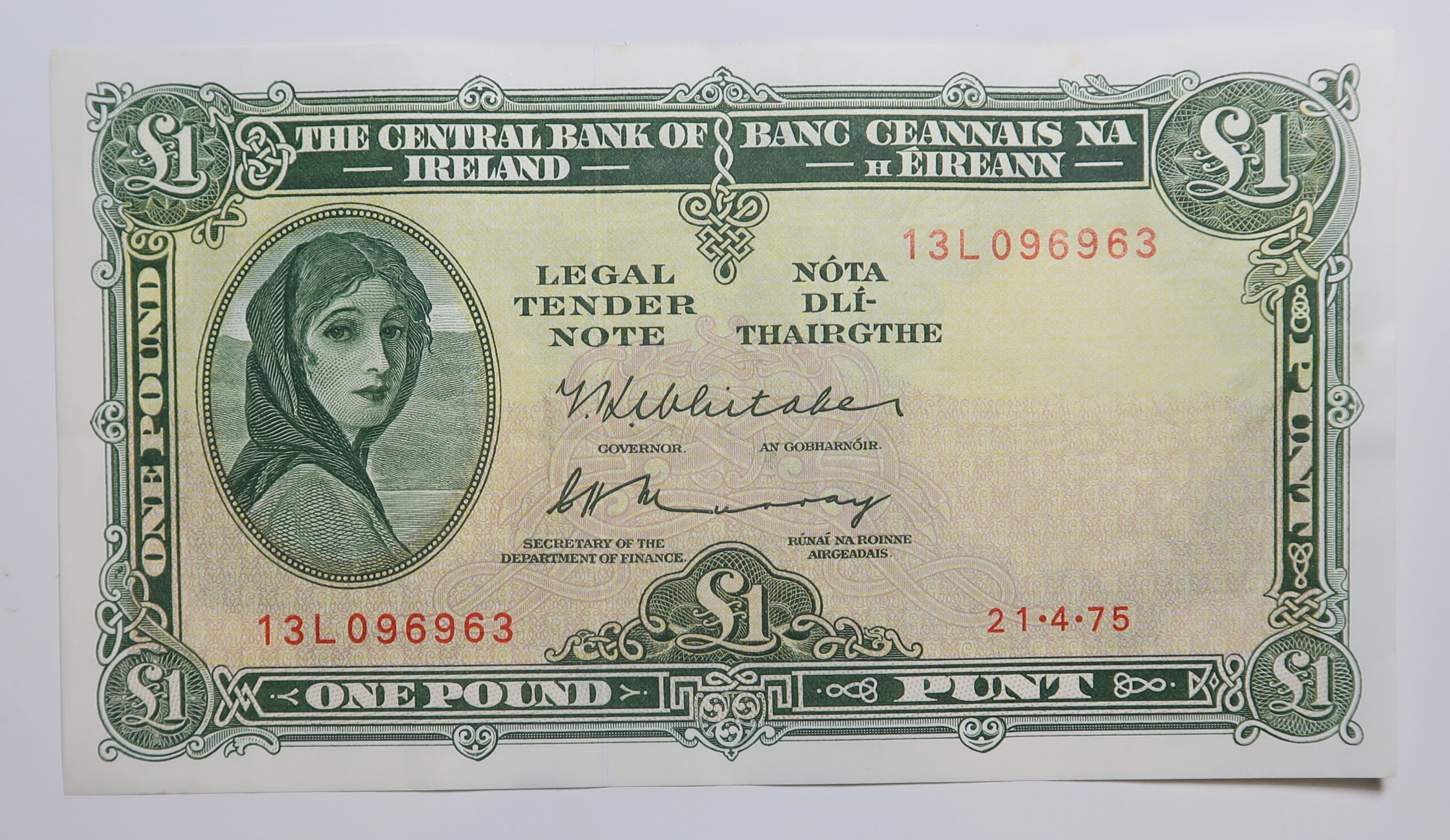 IRELAND LAVERY ONE POUND NOTE 21.4.1975.