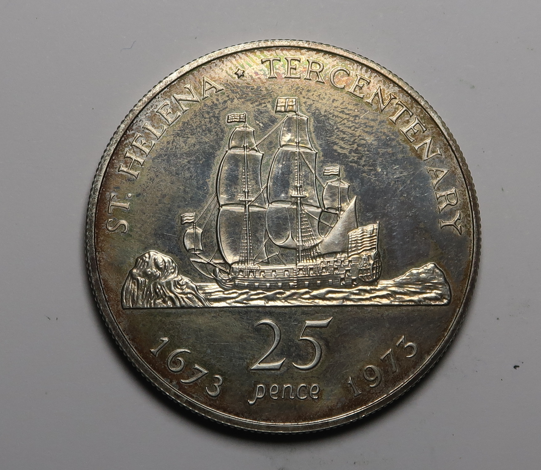 ST.HELENA : 25 PENCE 1973. SILVER PROOF. TERCENCENTENARY 1673 – 1973.