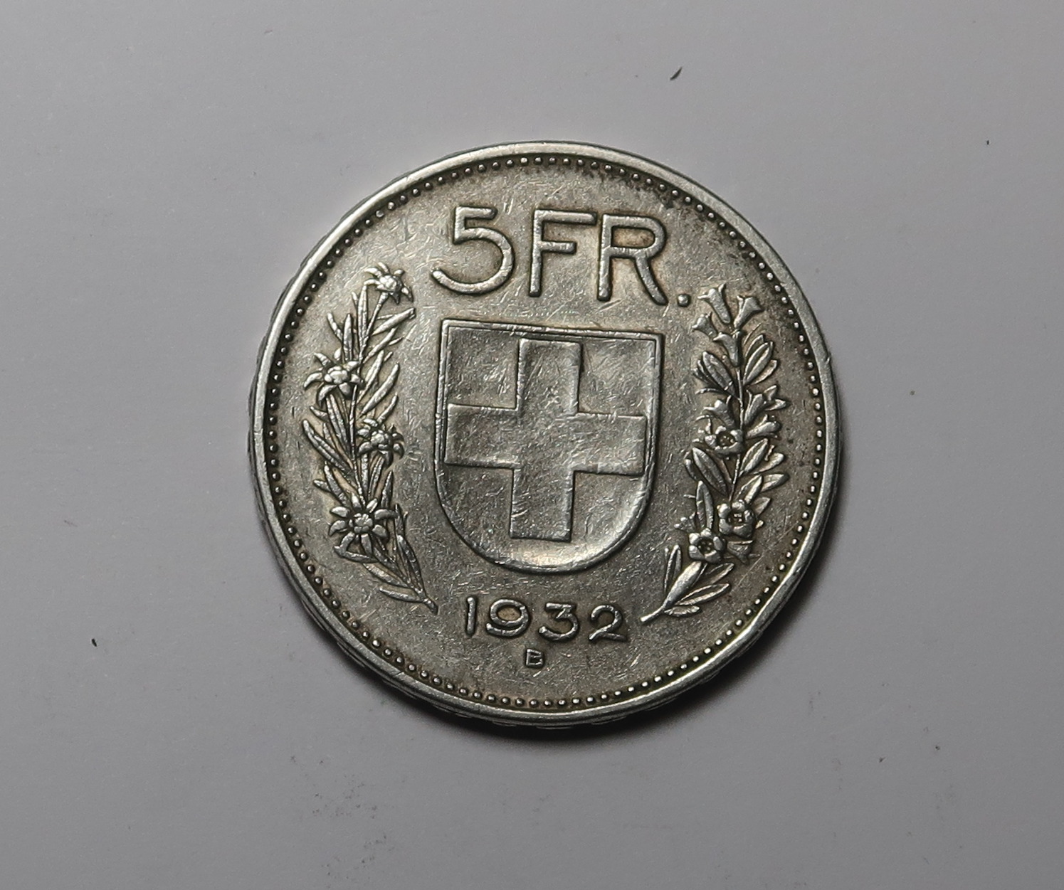 SWITZERLAND : SILVER FIVE FRANCS 1932.