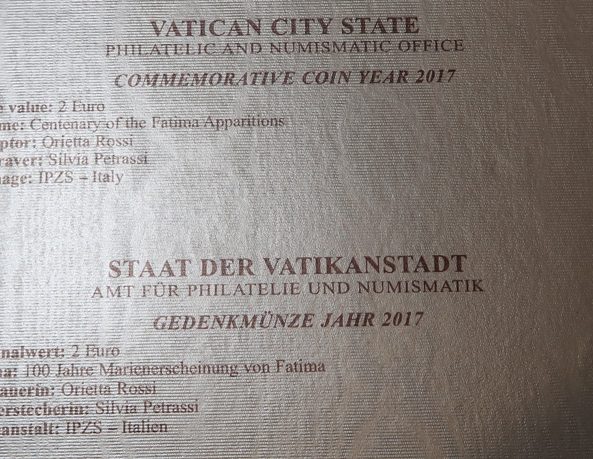 VATICAN : OFFICIAL TWO EURO 2017. UNC IN DISPLAY FOLDER.
